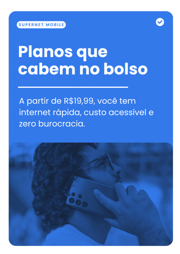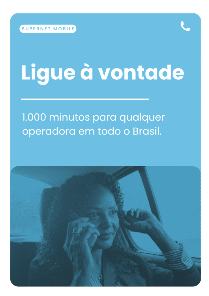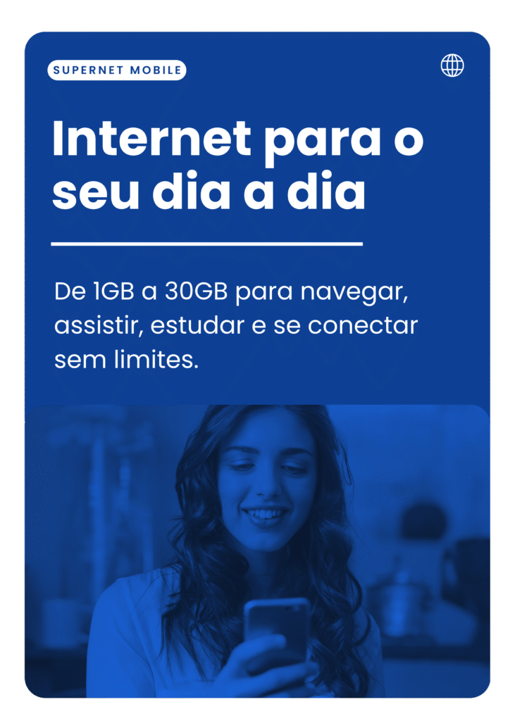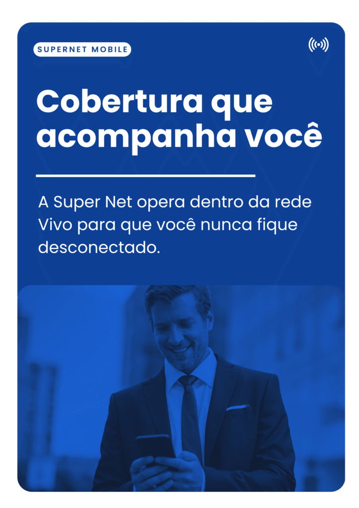 A Super Net Mobile possui cobertura nacional através da rede Vivo, alcançando praticamente todo o território brasileiro com sinal de alta qualidade. Ideal para quem quer estar sempre conectado, onde estiver.